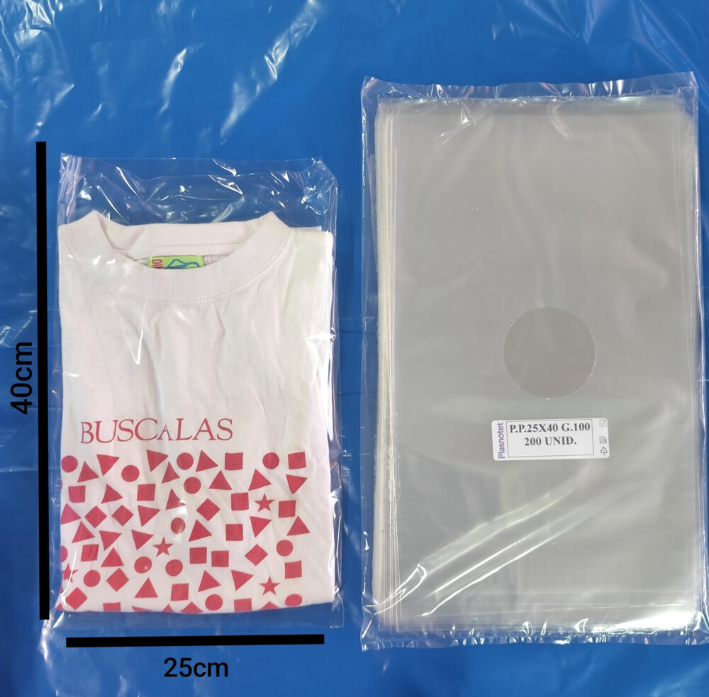 Bolsa de plastico de polipropileno 25cmx40cm g.100(25 micras)
